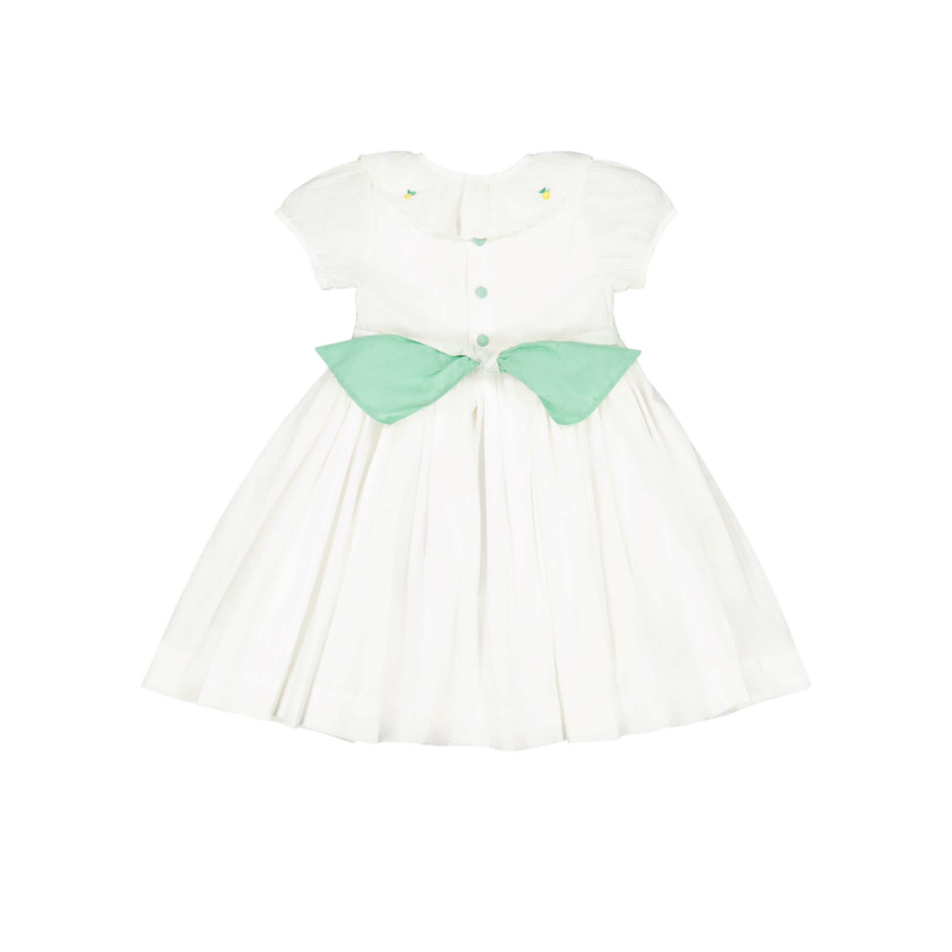 Antoinette Paris White Mint Victoria Smocked Short Sleeve Dress