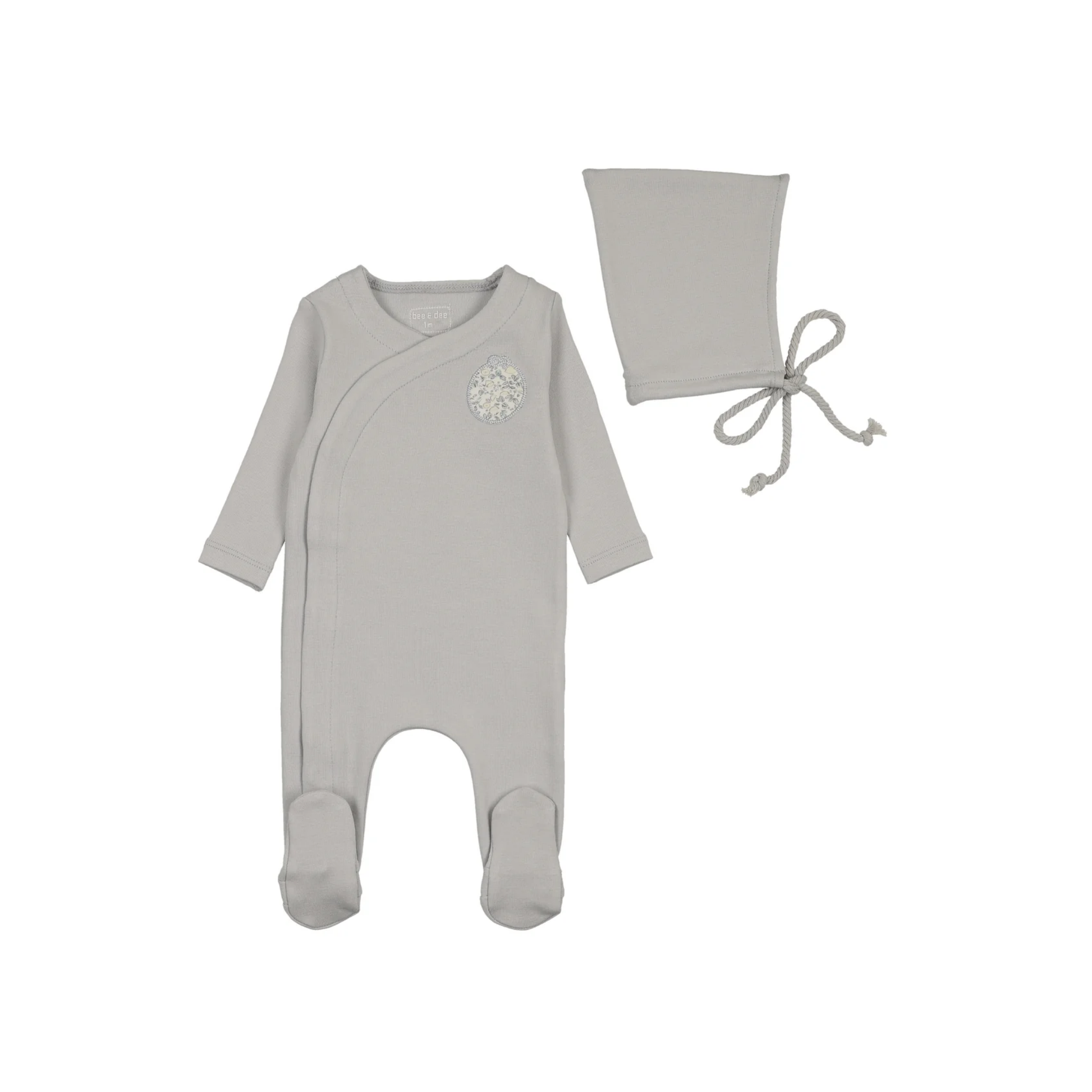 Bee And Dee Dusty Blue Lemon Print Applique Footie